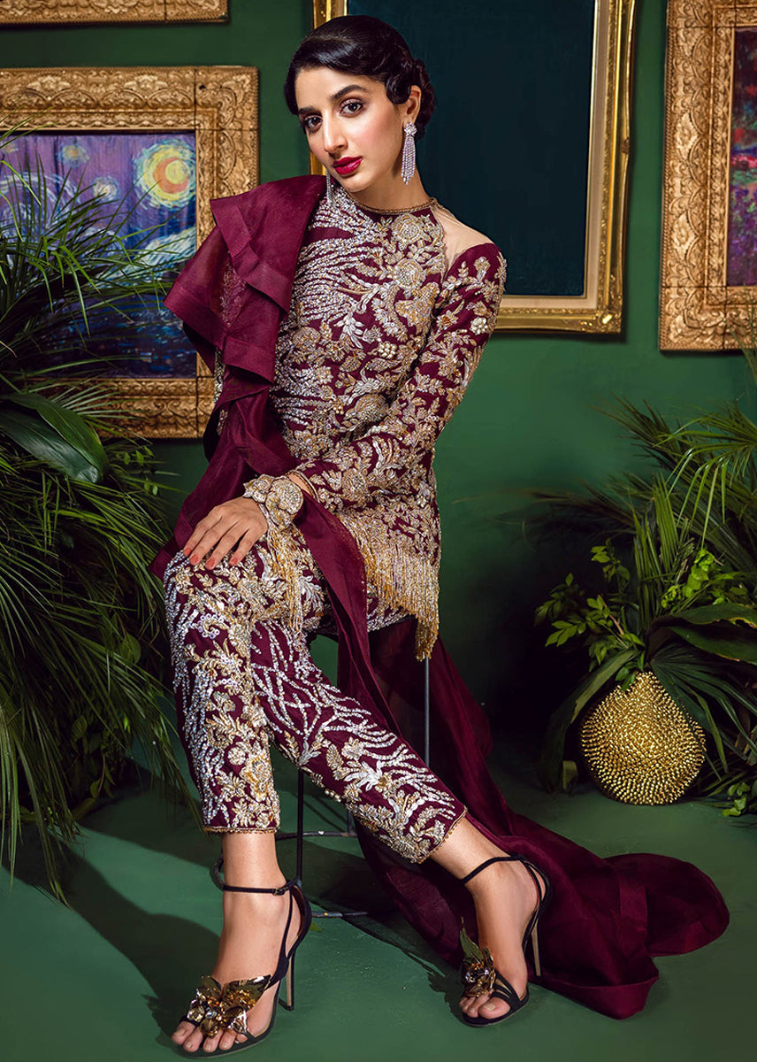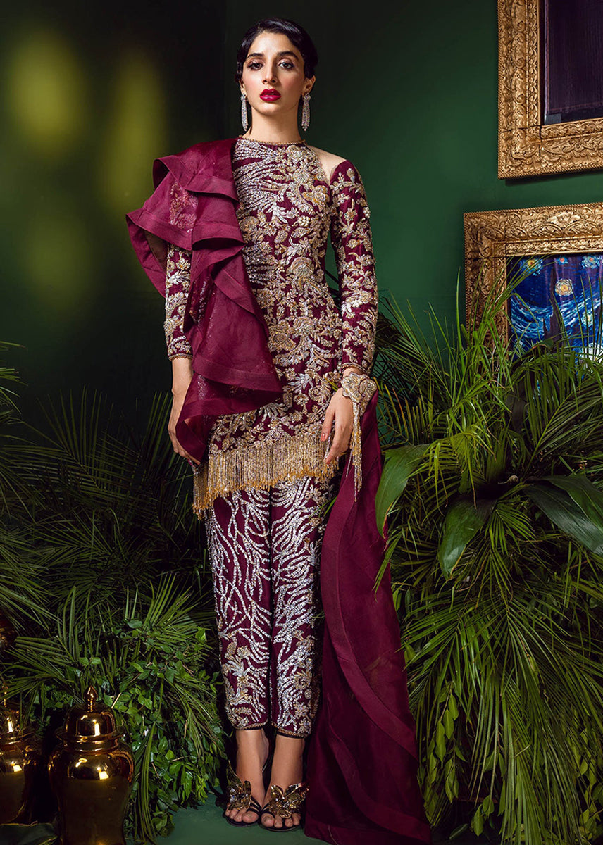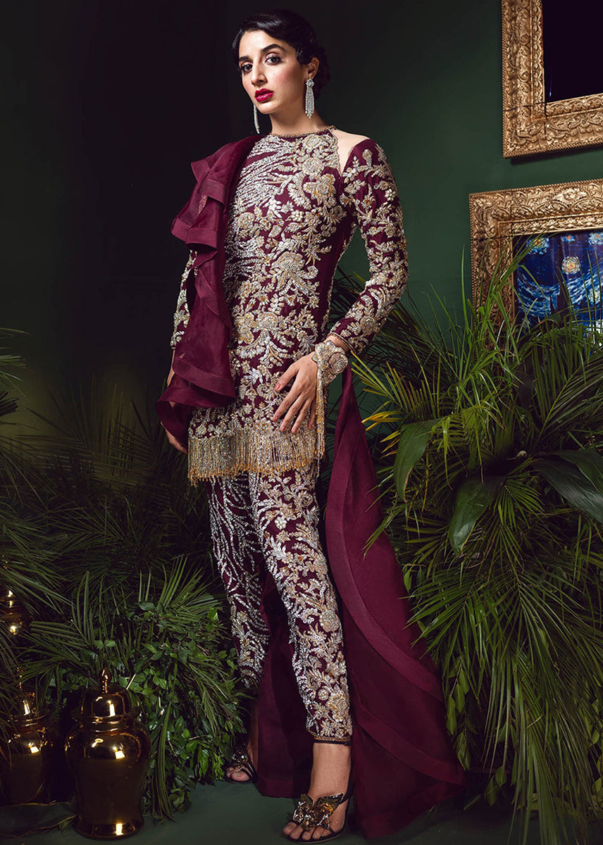This two piece modern garment is heavily adorned on the shirt and pant made out of rawsilk.