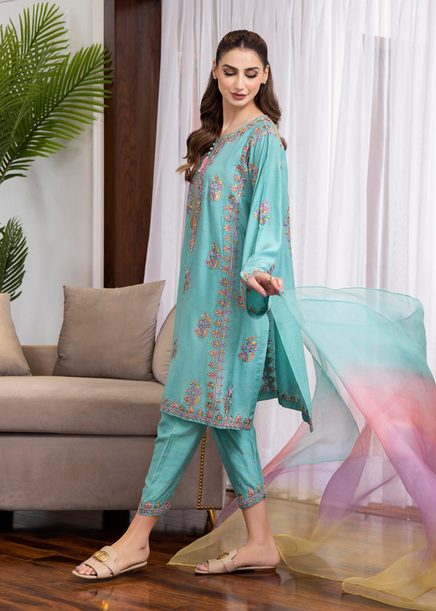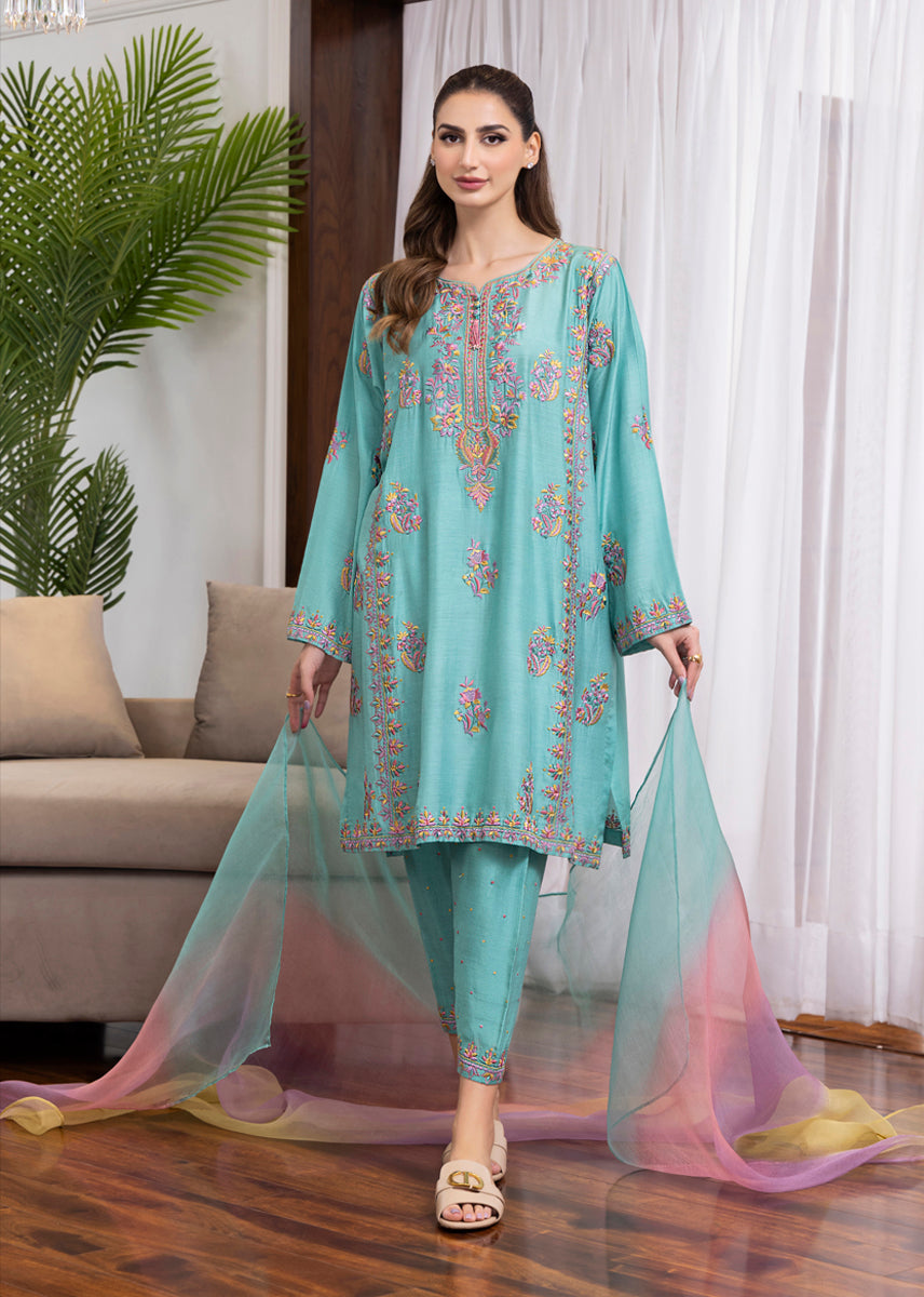 Fabric: Shirt & Shalwar: Katan Silk - Dupatta: Pure Organza