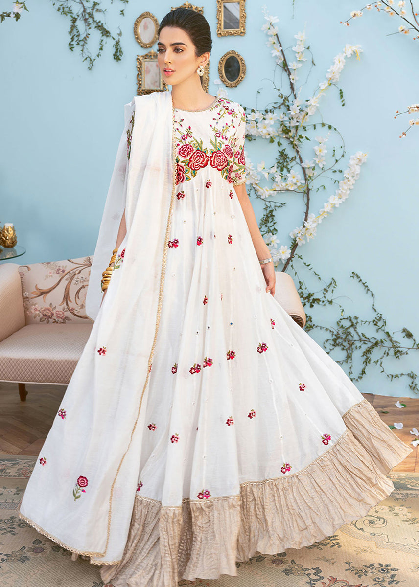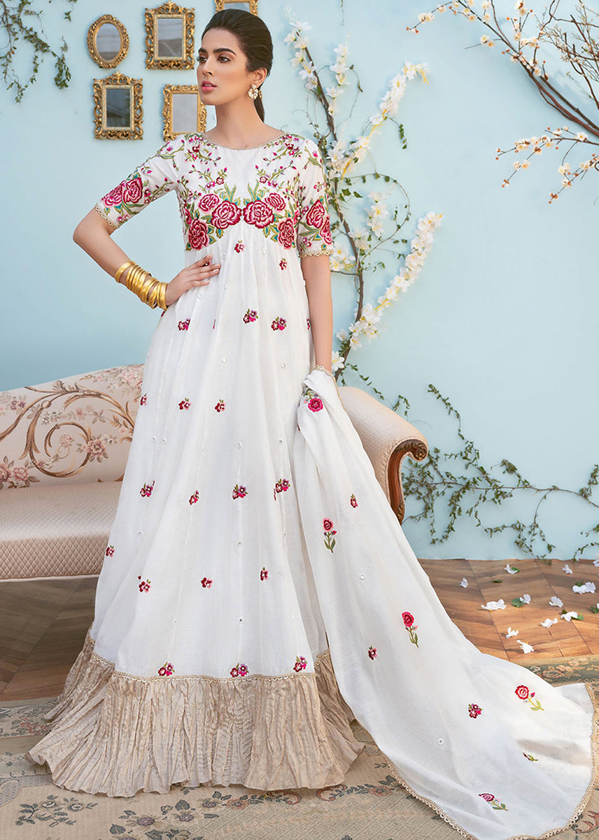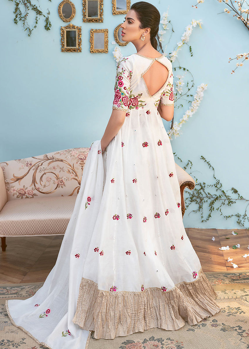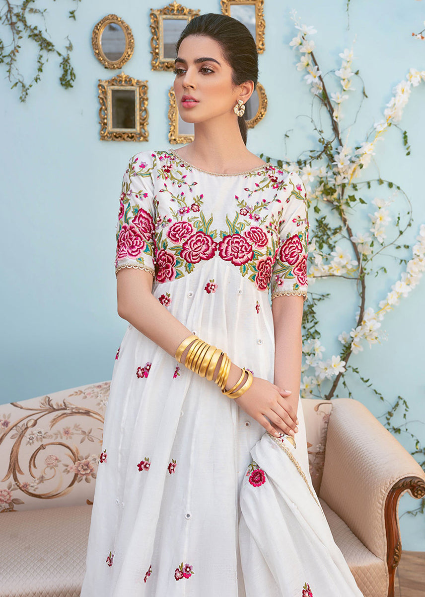 This 2 piece exquisite white pishwaas is curated with light silk cotton.