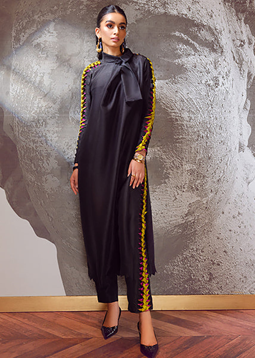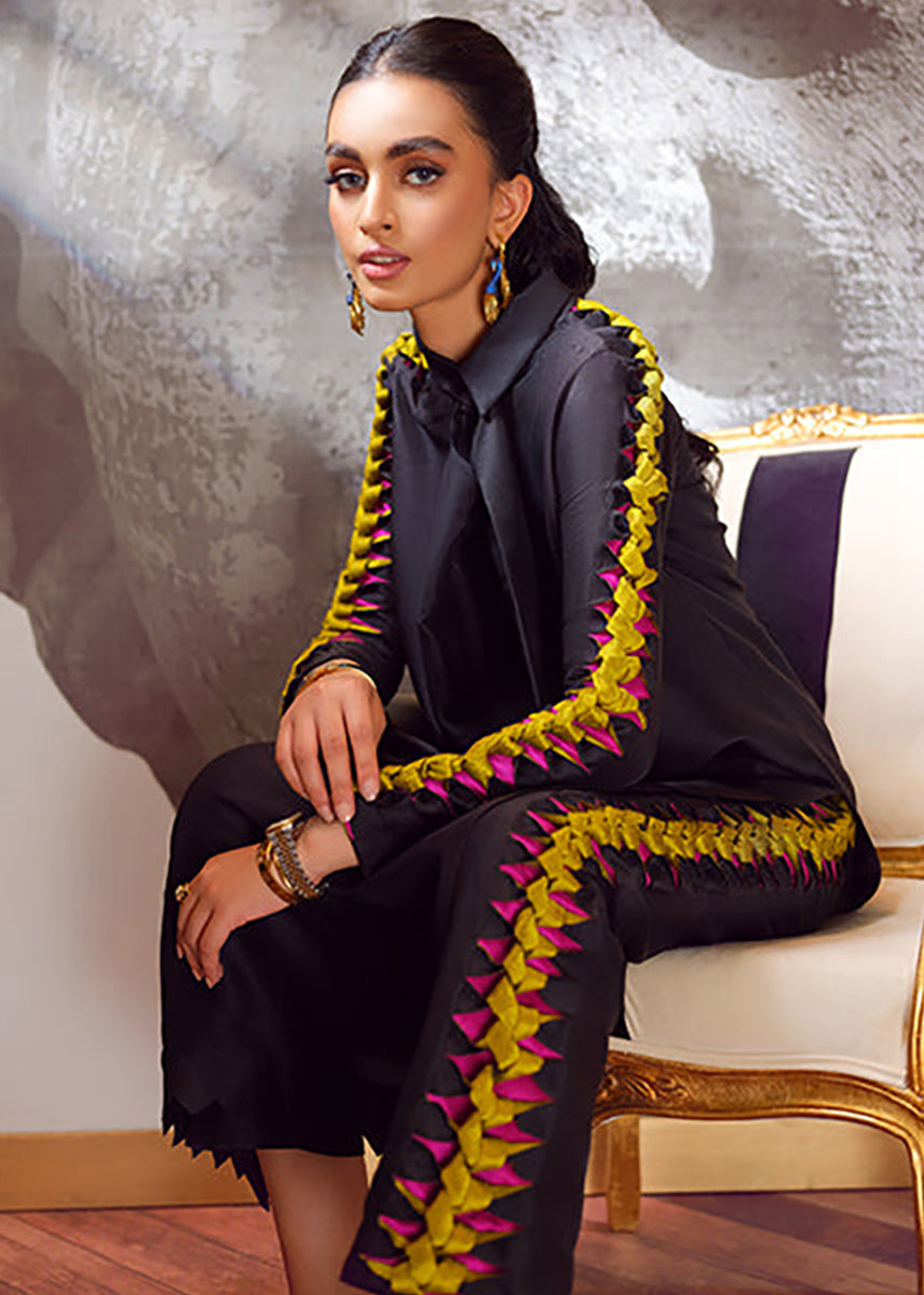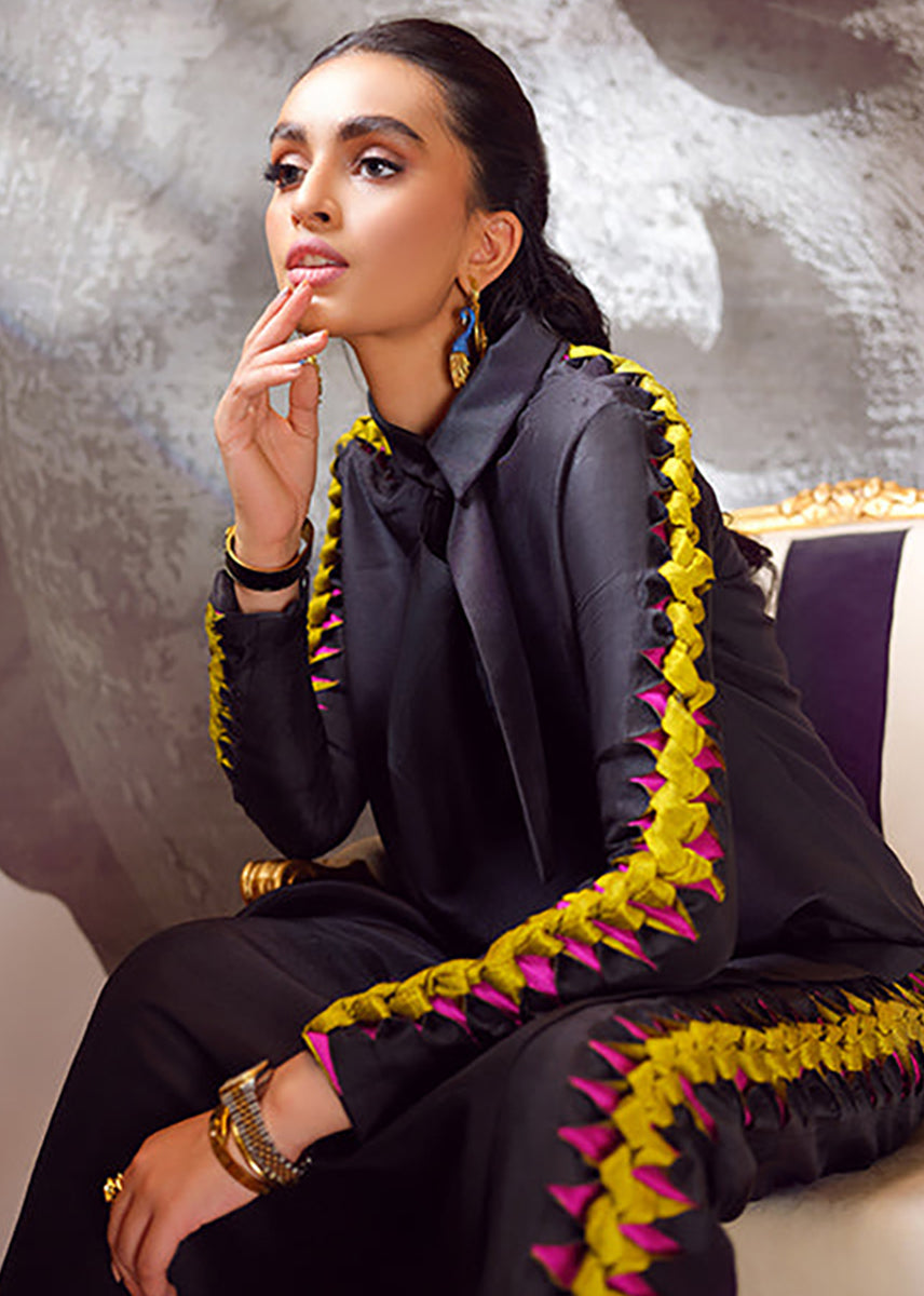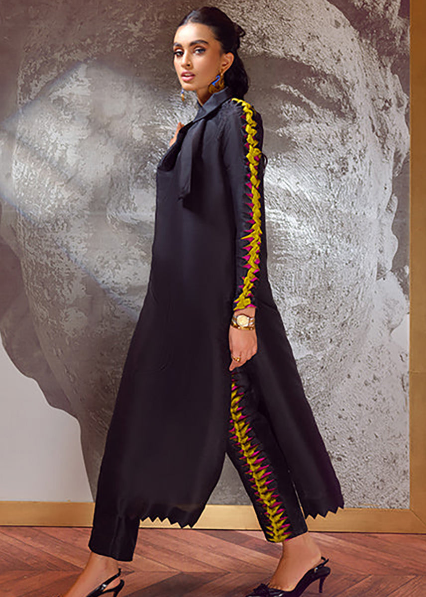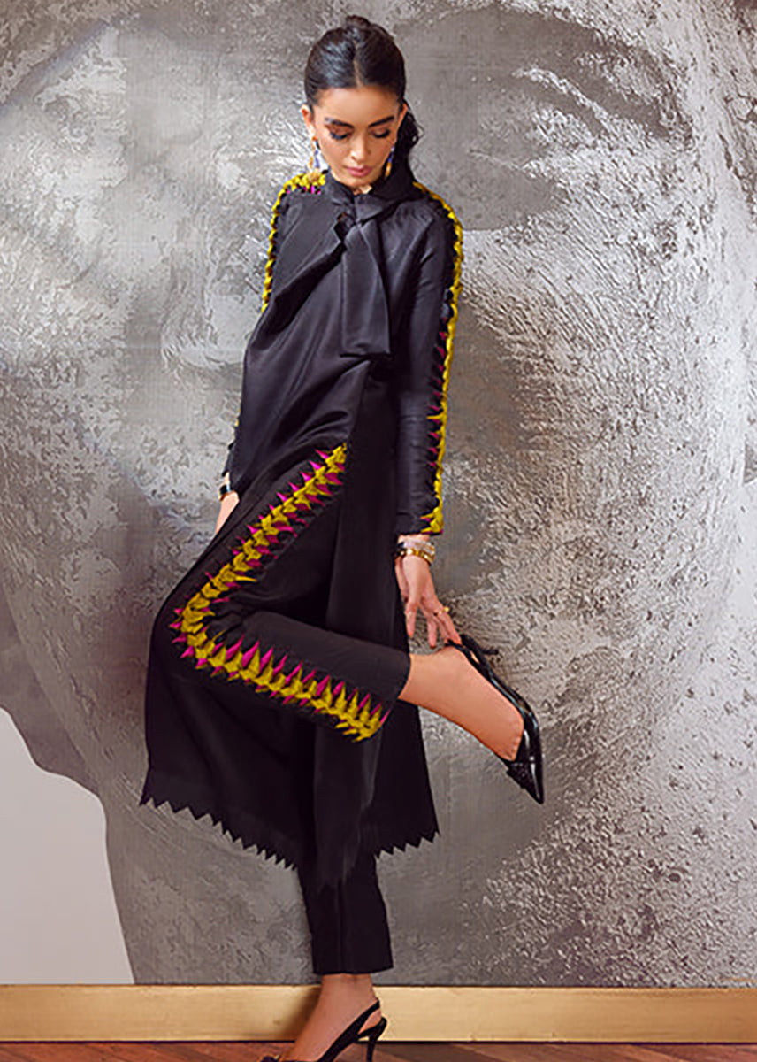 Kirigami Noir is a stitching master piece, created out of black raw silk.