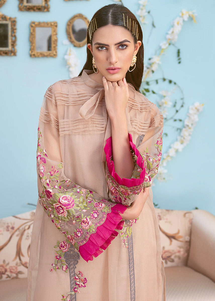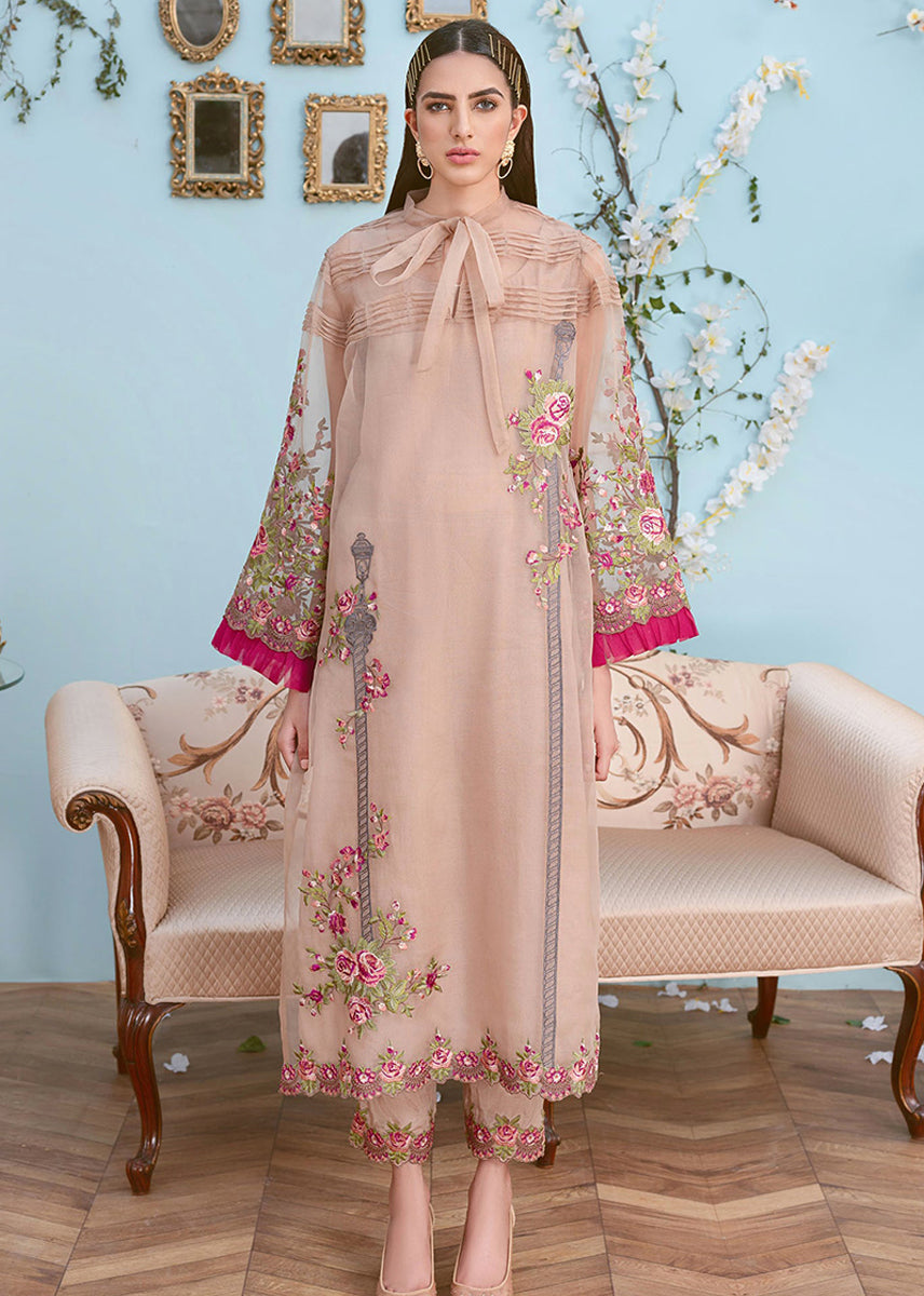 Lampdaire is an elegant French beige tone outfit that is designed with delicate embroidery in patterns of lampposts ,twinned with floral vine.