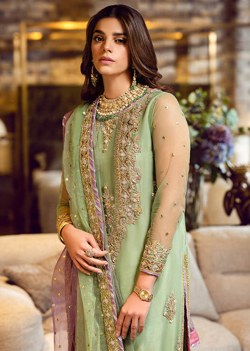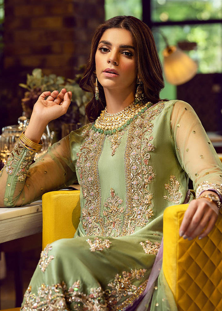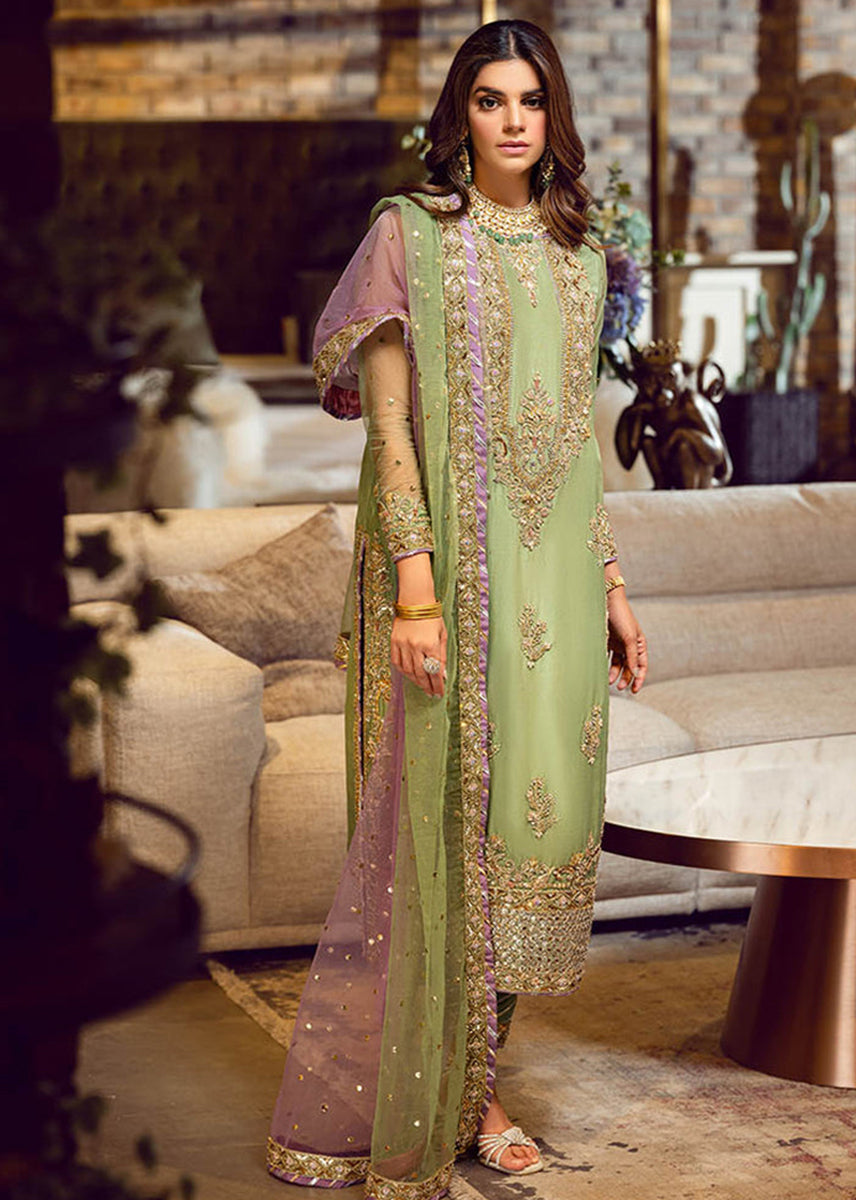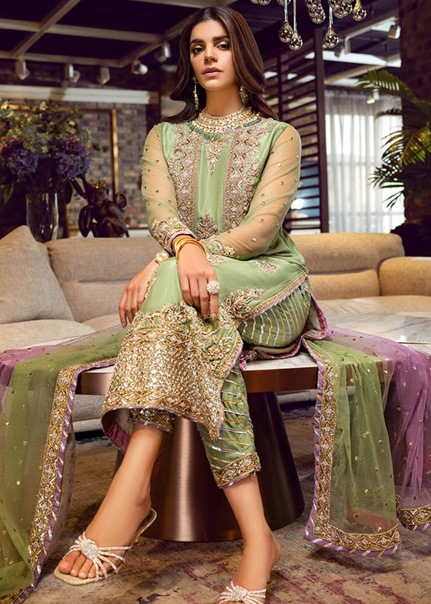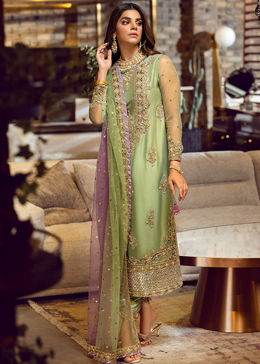 This breathtaking combination of pista green and lavender amalgamates in a unique way making it a must have outfit.