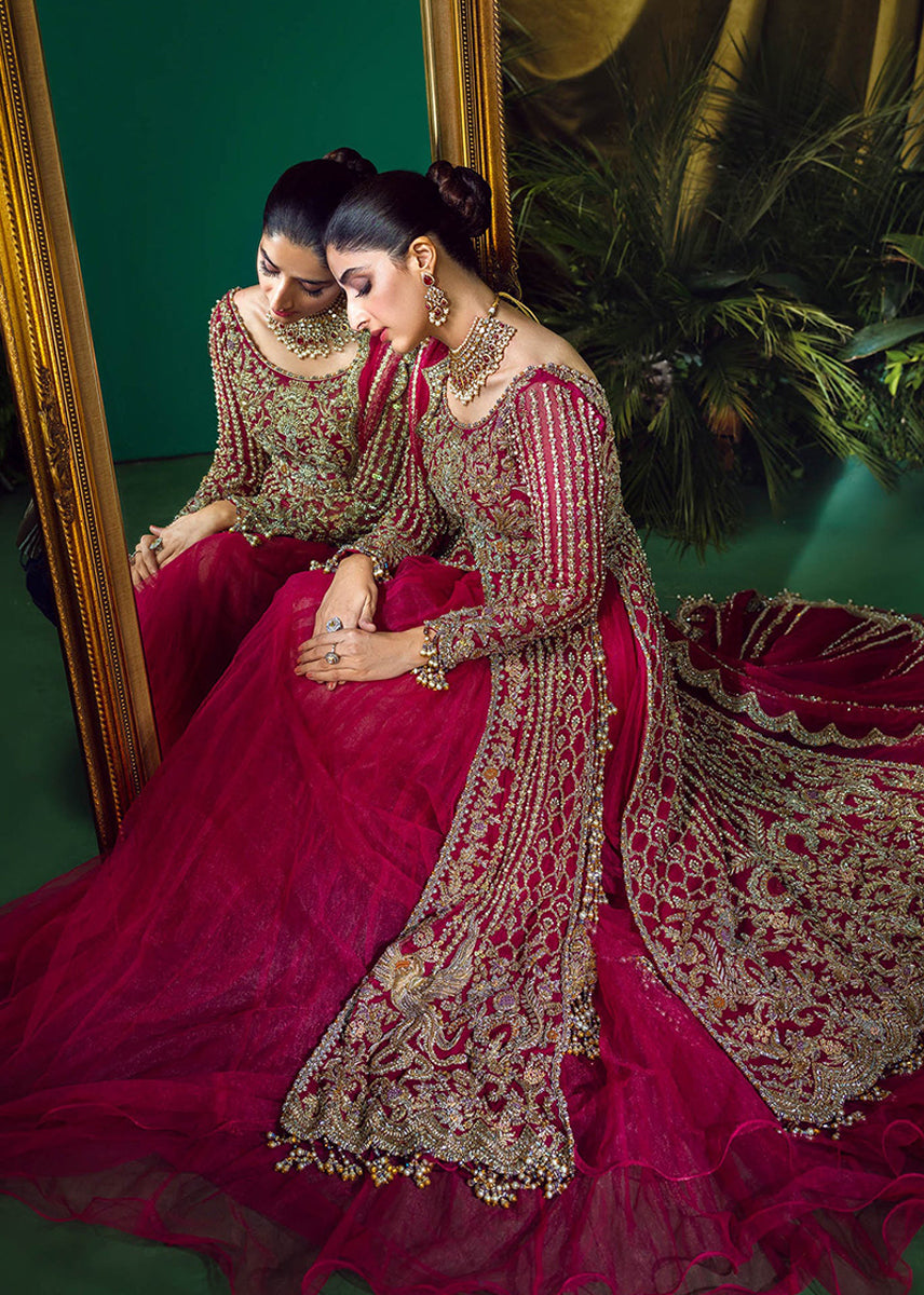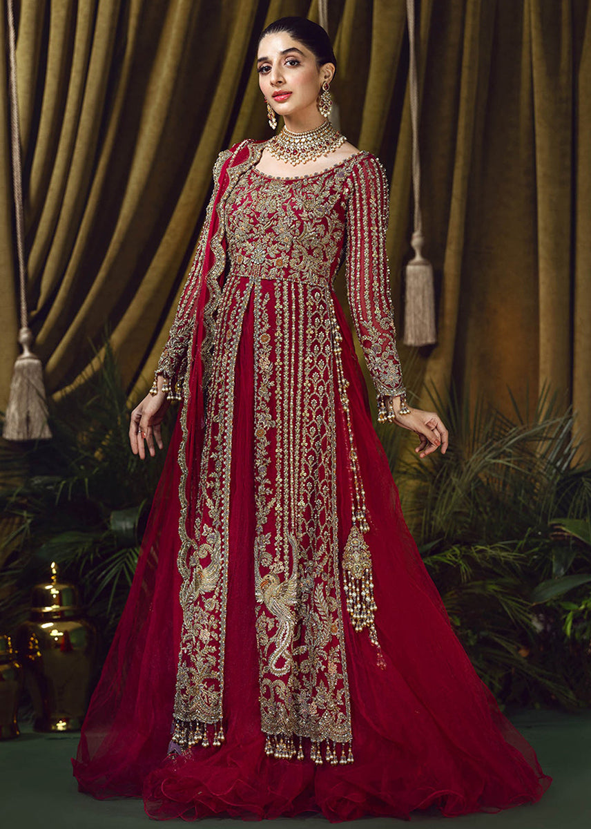 A modern take on traditional wedding wear. The three piece outfit is made out of net.