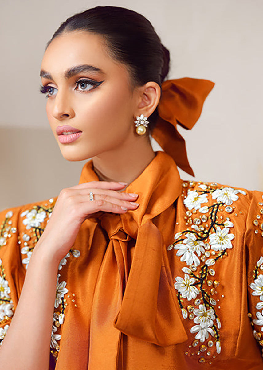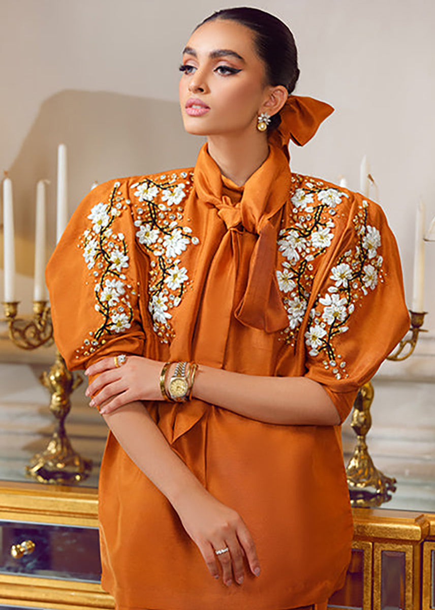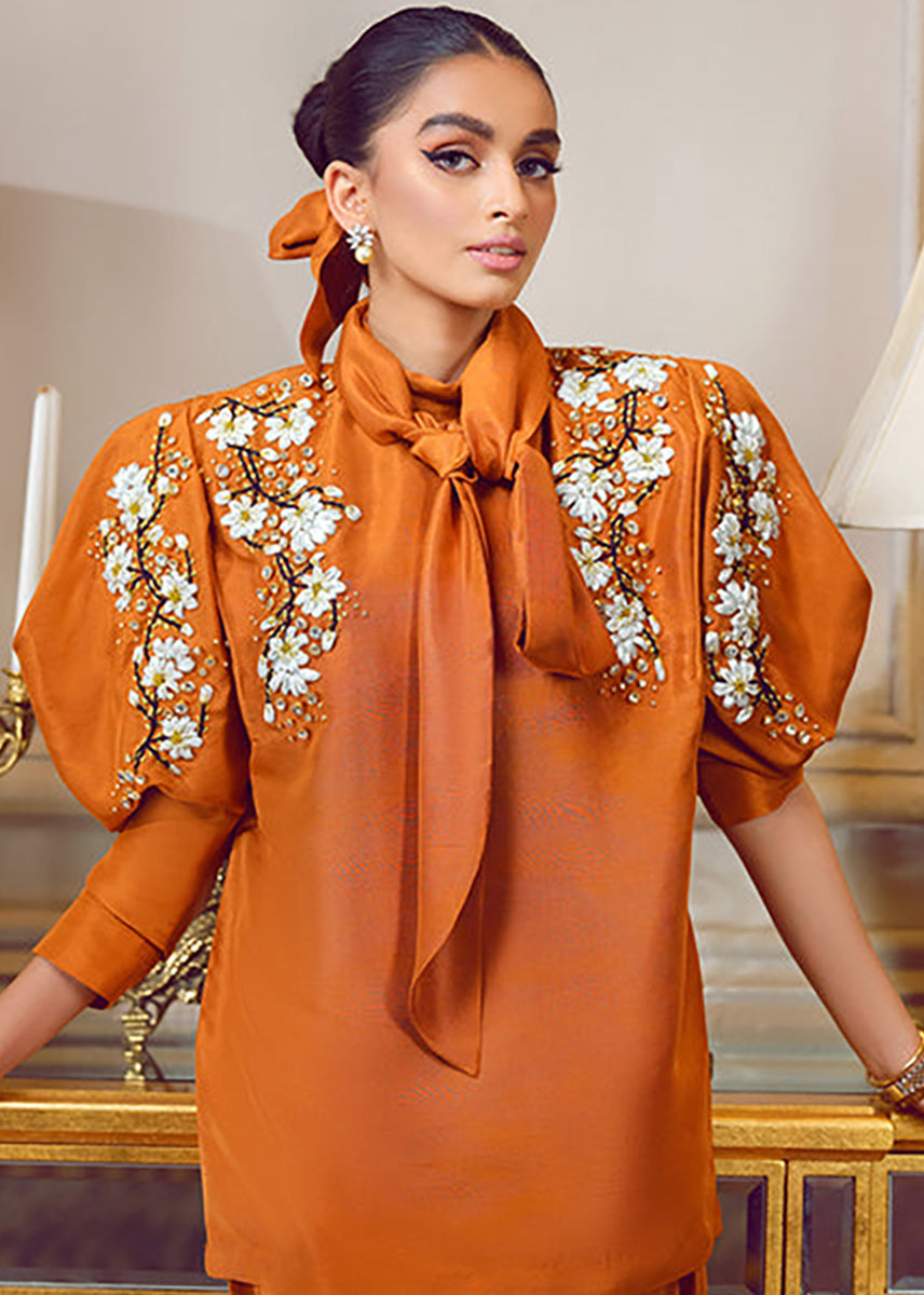 Sakura cluster is a 2 piece outfit made in pure raw silk dyed rust.
